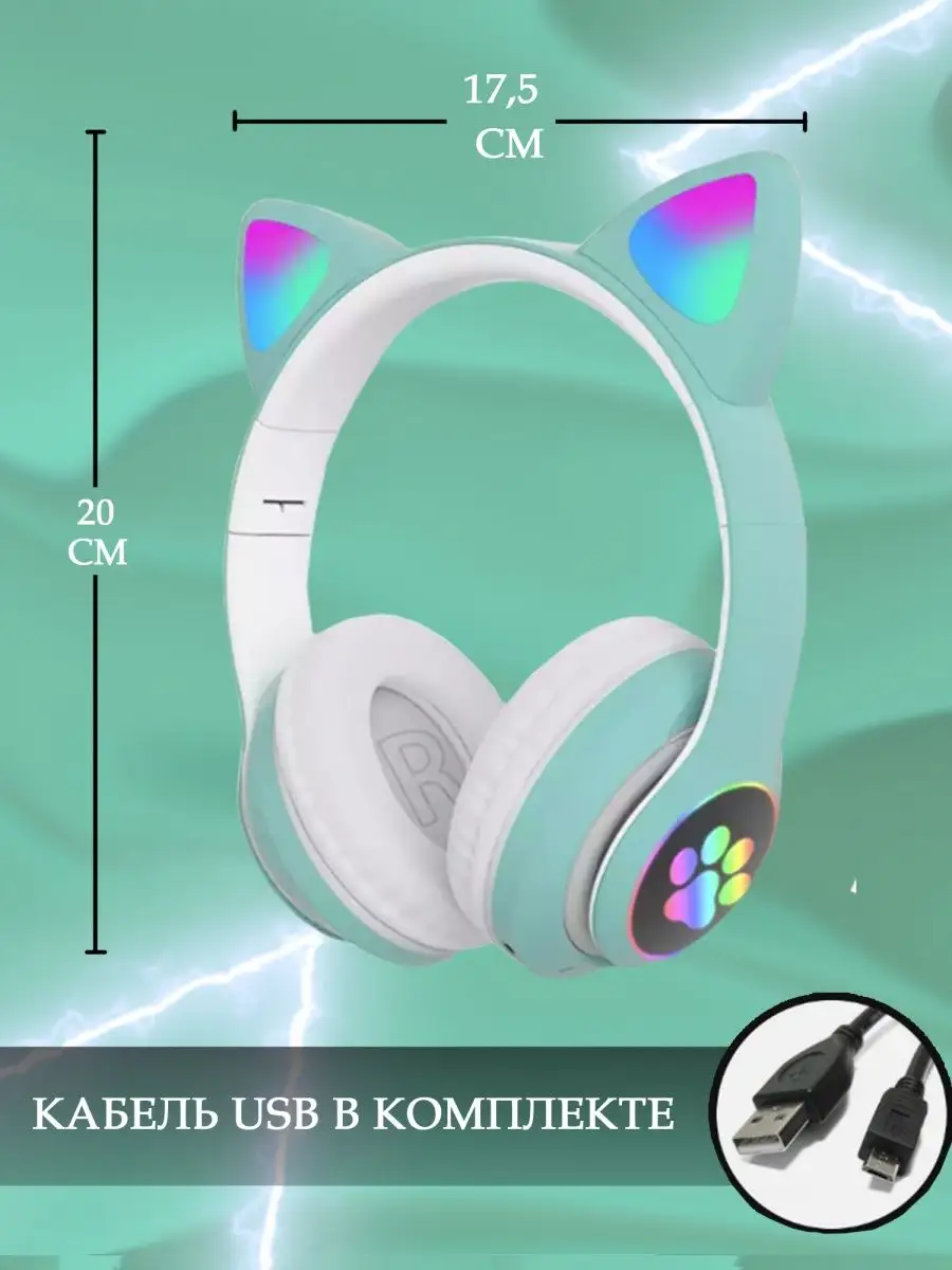Стильный дизайн со светящимися ушками и лапками кошки Могут работать по Bluetooth или автономно. Беспроводные наушники Cat Ear P33M имеют качественное стереозвучание, встроенный аккумулятор. Большие и мягкие амбушюры гарантируют отличное звучание Вашей любимой музыке даже в очень шумном помещении. Интересный и яркий дизайн! Отличительной чертой наушников является светодиодная подсветка декоративных ушек и самих наушников. Это вызовет восторг друзей и не оставят Вас без внимания окружающих.